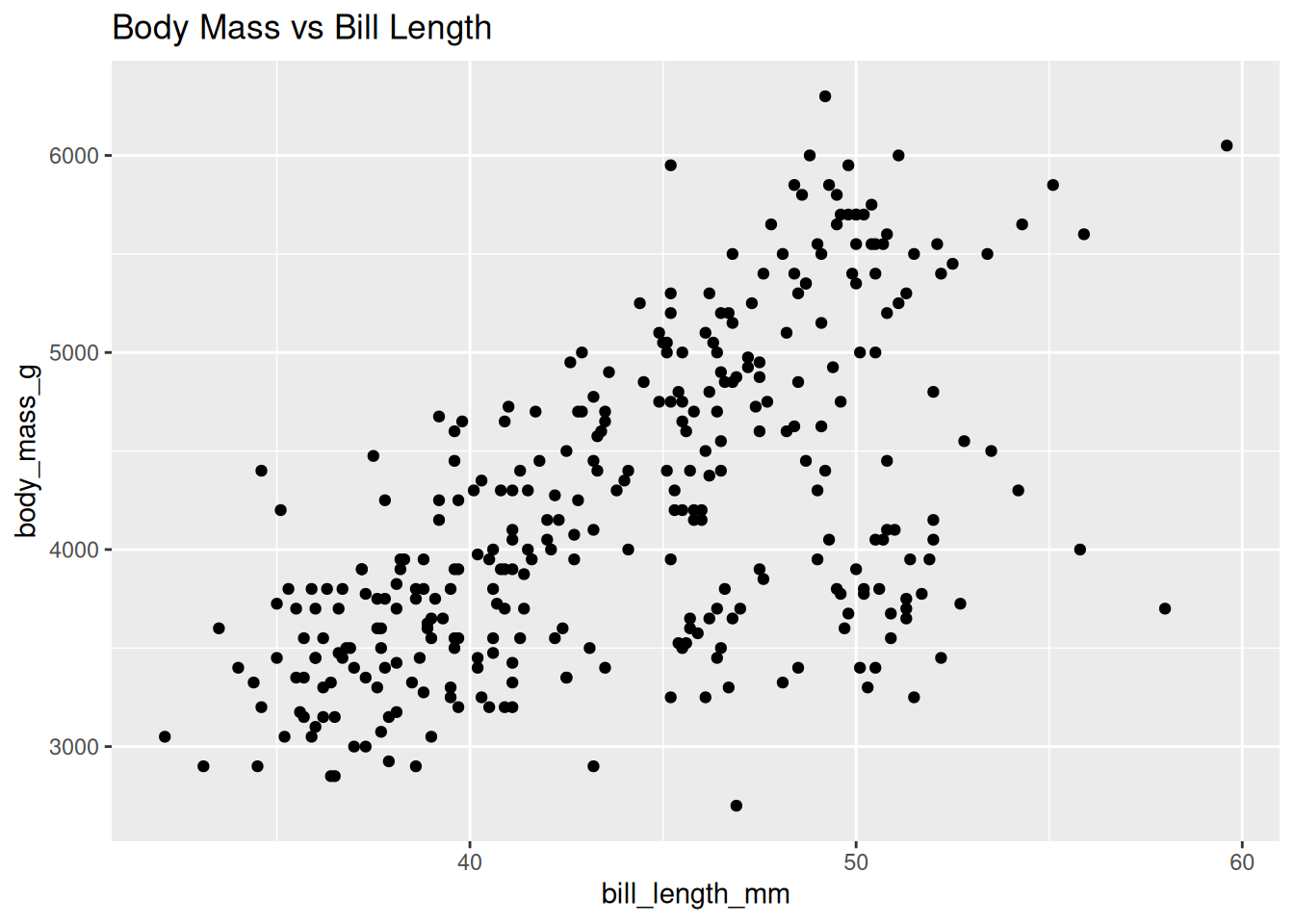 ggplot(df, aes(x = bill_length_mm, y = body_mass_g)) +